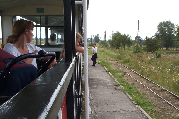 Zdjęcie z ostatniego wagonu. Nasz ''ekspres'' przeleciał przez stację Rydlewo bez zatrzymania (mówiąc poważnie: widoczne na zdjęciu miejsce już zapewne nie jest stacją, ponieważ stacja Rydlewo nie figuruje już w żadnym rozkładzie jazdy [1])
