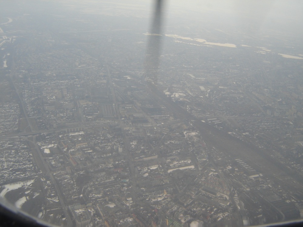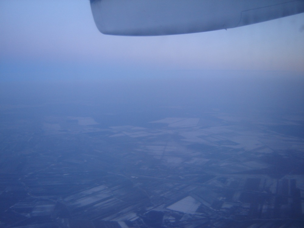 Podchodzimy do lądowania w Poznaniu. Zdjęcie zostało zrobione chwilę po przebiciu się przez dolną warstwę chmur