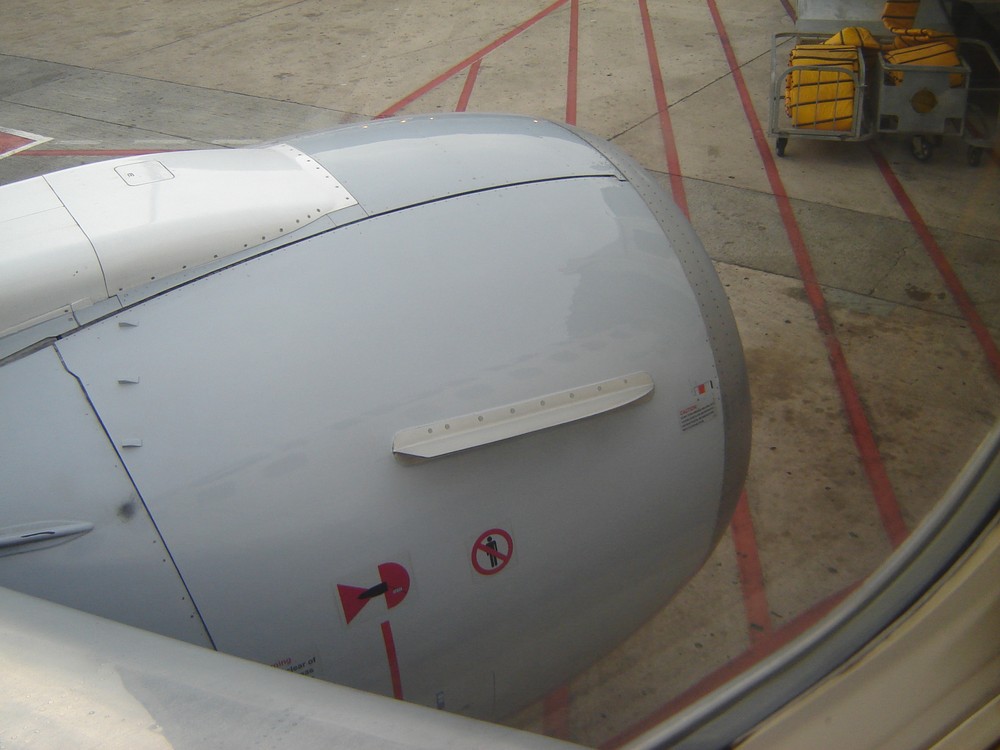 Dostałem miejsce przy oknie, akurat przy jednym z dwu silników odrzutowych tego samolotu,