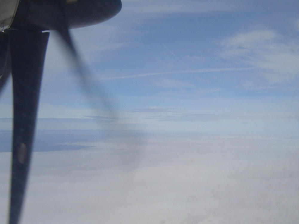 dole, za to jest błękitne niebo, cudne słońce (mimo że na ziemi lało jak z cebra) i morze ślicznych białych chmur poniżej