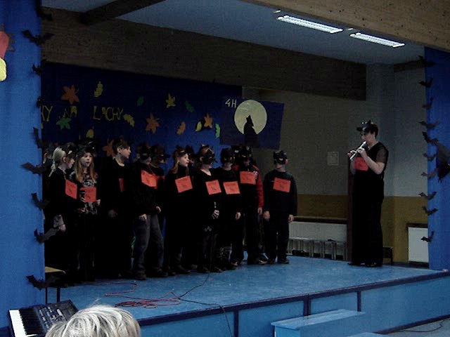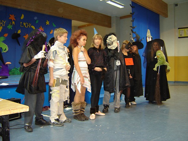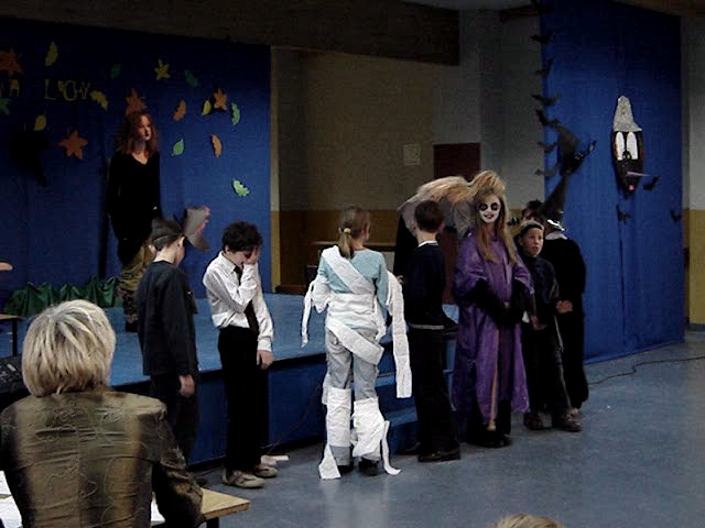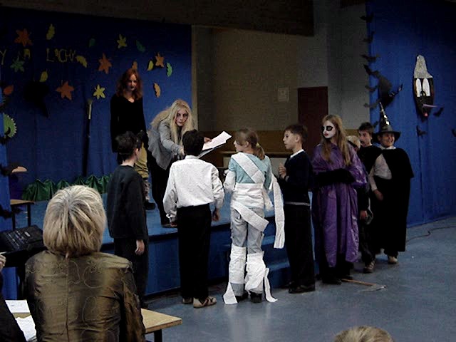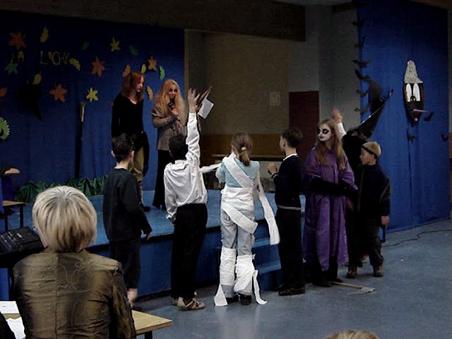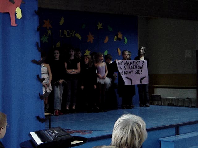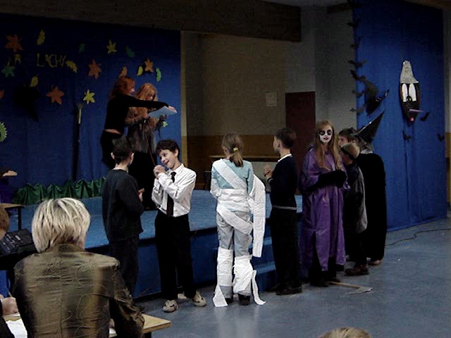 To inne klasy: przebrane za gnomy, mumie, wiedźmy... Poniżej - kilka "stopklatek" z filmu z występów poszczególnych klas i konkursów