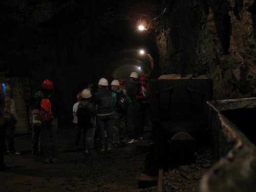 To nasza grupa i przewodnik - tuż po wyjściu z podziemi. Ich ciepłe ubiory są nie bez kozery: w korytarzach panuje nawet w lecie temperatura 7-8 st. C
