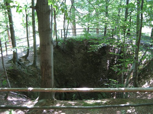 Podziemna hala z drewnianym stropem, częściowo spalonym przez grupę satanistów, która zadomowiła się tutaj w okresie wakacji kilka lat temu, gdy obiekt jeszcze nie był udostępniony do zwiedzania z przewodnikiem