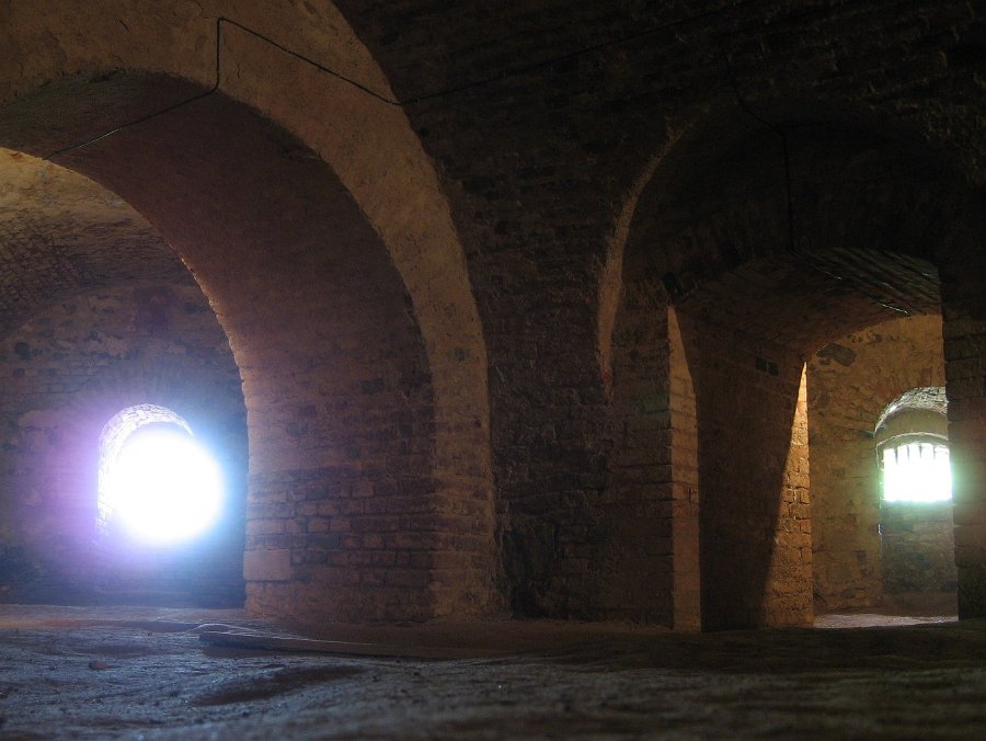 Wejście nie bez kozery jest po łuku: chodzi o to, aby kule armatnie nawet po pokonaniu wrót rozbiły się o ściany korytarza, a nie wpadły na dziedziniec