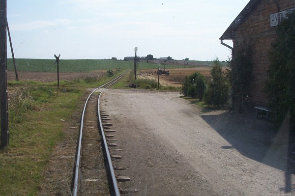 Zdjęcie z ostatniego wagonu. Nasz ''ekspres'' przeleciał przez stację Rydlewo bez zatrzymania (mówiąc poważnie: widoczne na zdjęciu miejsce już zapewne nie jest stacją, ponieważ stacja Rydlewo nie figuruje już w żadnym rozkładzie jazdy [1])