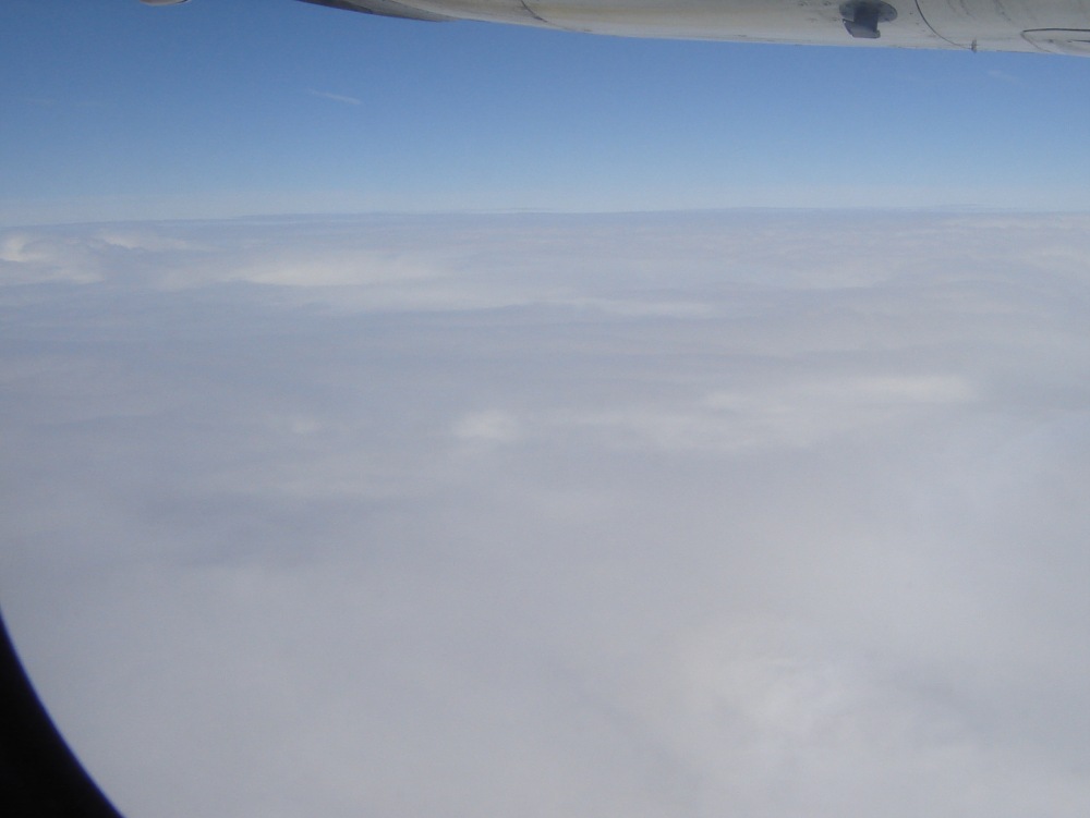 dole, za to jest błękitne niebo, cudne słońce (mimo że na ziemi lało jak z cebra) i morze ślicznych białych chmur poniżej