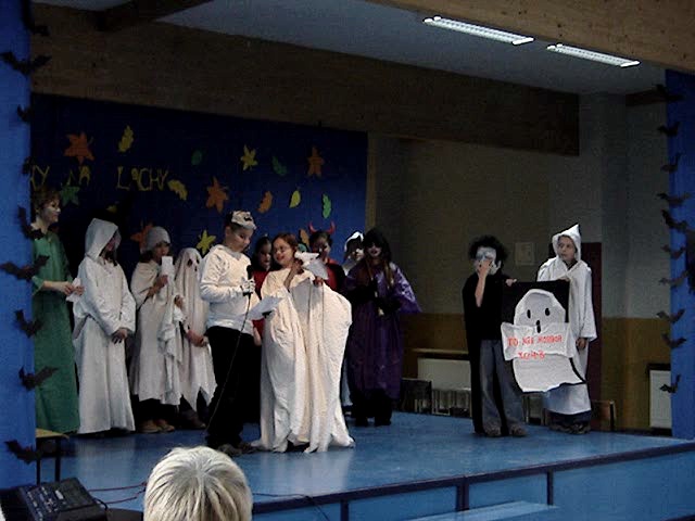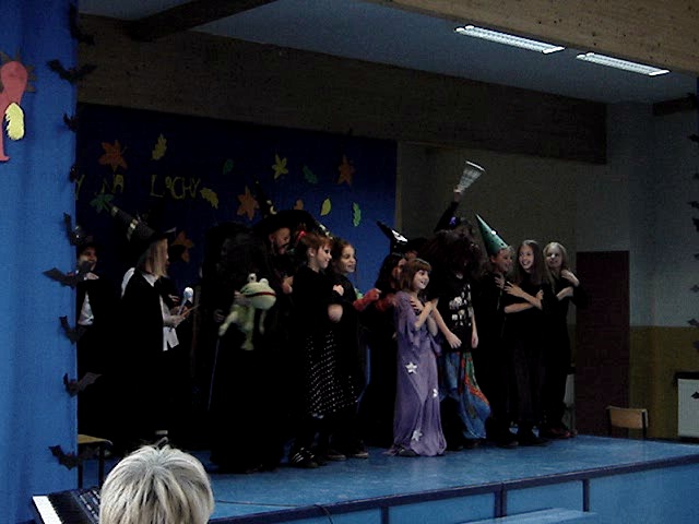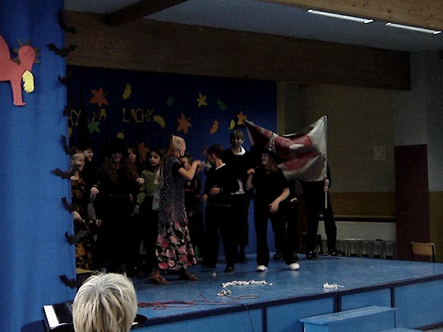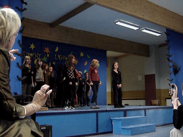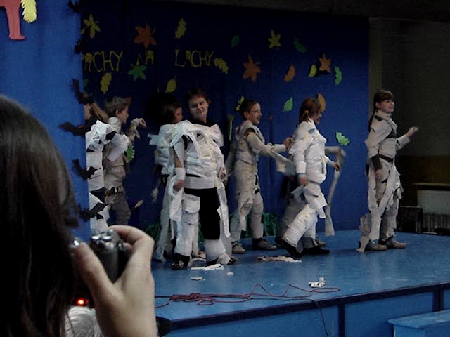 To inne klasy: przebrane za gnomy, mumie, wiedźmy... Poniżej - kilka "stopklatek" z filmu z występów poszczególnych klas i konkursów