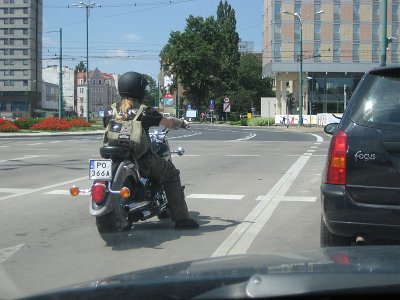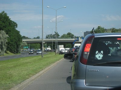 Chciałem wyjechać z Poznania szeroką dwupasmową ulicą w kierunku na Piłę (aby złapać ten pociąg w Rogoźnie lub Chodzieży). I tu niespodzianka: długi korek
