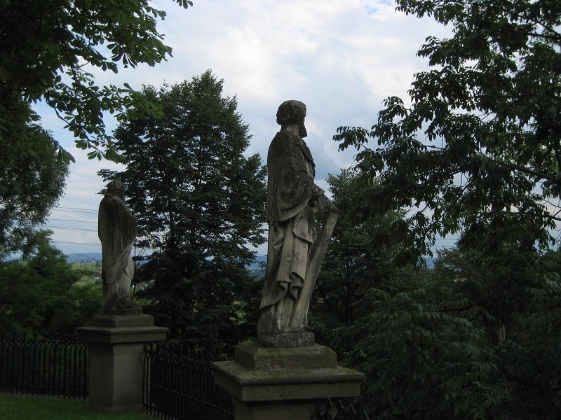 | Jadąc nazajutrz z Sanoka do Wałbrzycha, przejeżdżałem przez Giecz. Ogrodzenie Kościoła na wzgórzu stanowiły takie oto figurki (świętych?) | |