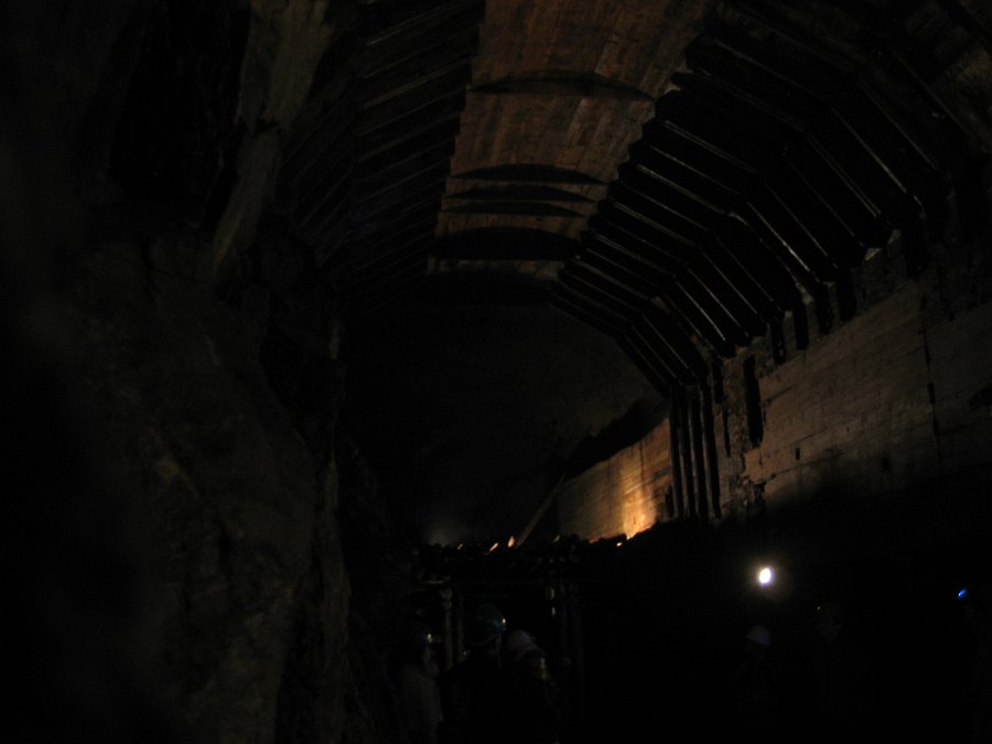 Tu widać, jak stopniowo drążono te ogromne korytarze: najpierw na wysokość człowieka, potem niżej (docelowo niższa część miała być tak samo szeroka, jak górna)
