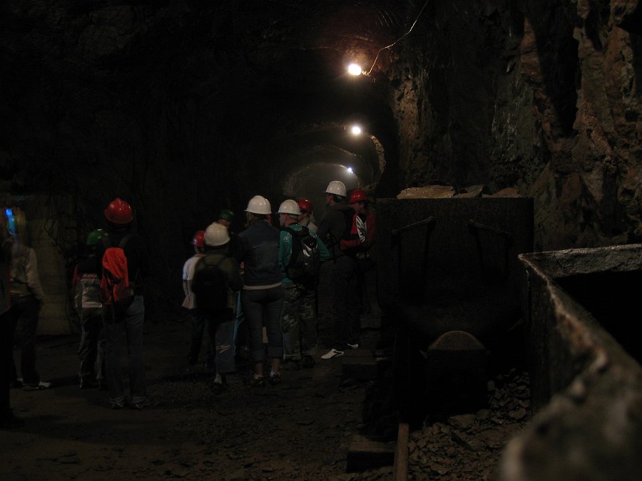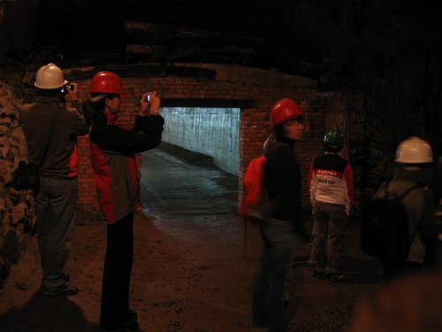 To nasza grupa i przewodnik - tuż po wyjściu z podziemi. Ich ciepłe ubiory są nie bez kozery: w korytarzach panuje nawet w lecie temperatura 7-8 st. C