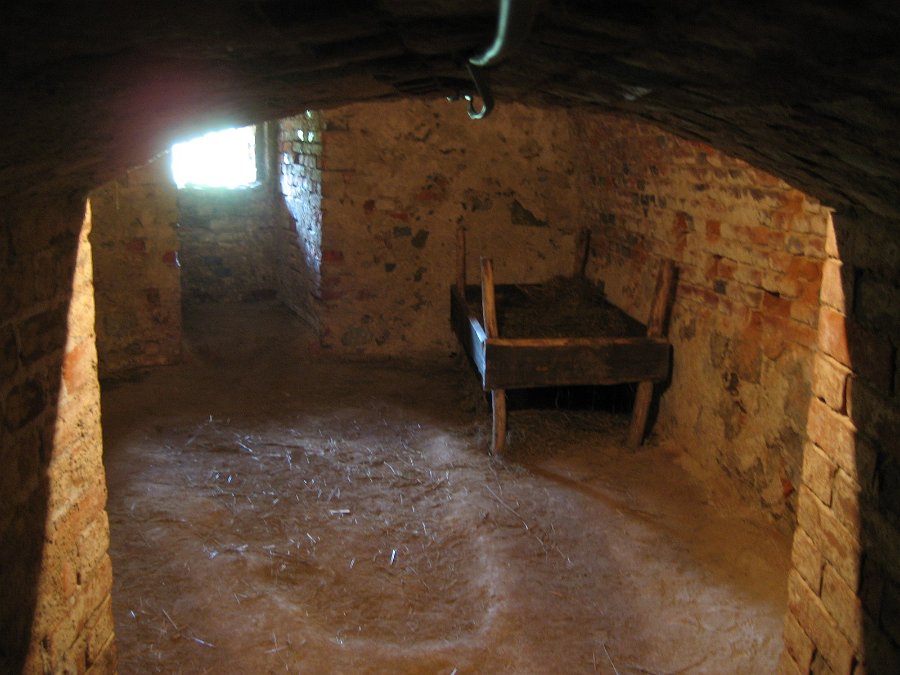 Wejście nie bez kozery jest po łuku: chodzi o to, aby kule armatnie nawet po pokonaniu wrót rozbiły się o ściany korytarza, a nie wpadły na dziedziniec
