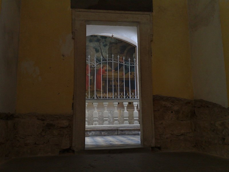 Jedna z kapliczek wewnątrz bazyliki, z uroczym obrazem, na którym Jezus został przedstawiony jako dziecko pomagające w pracach ciesielskich swojemu ojcu