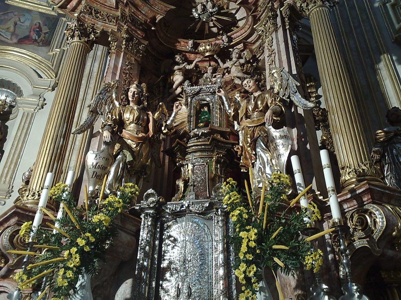 A oto główny ołtarz z maleńką figurką "Królowej"